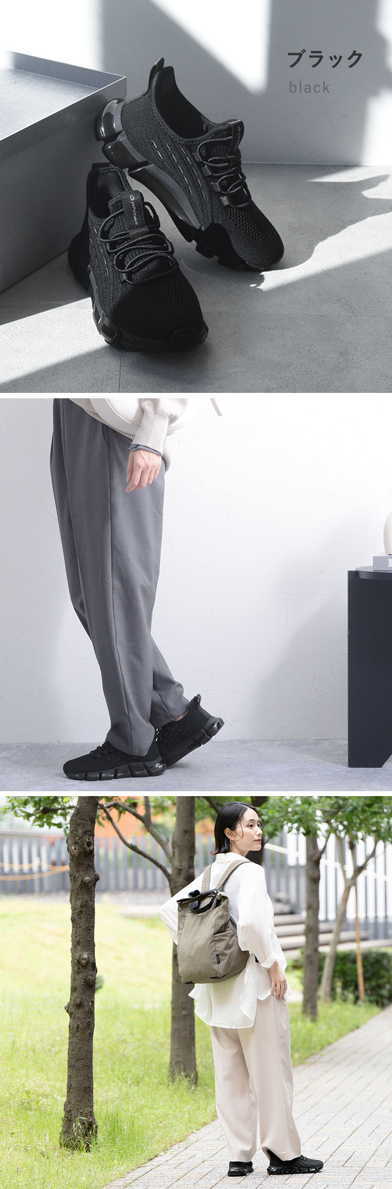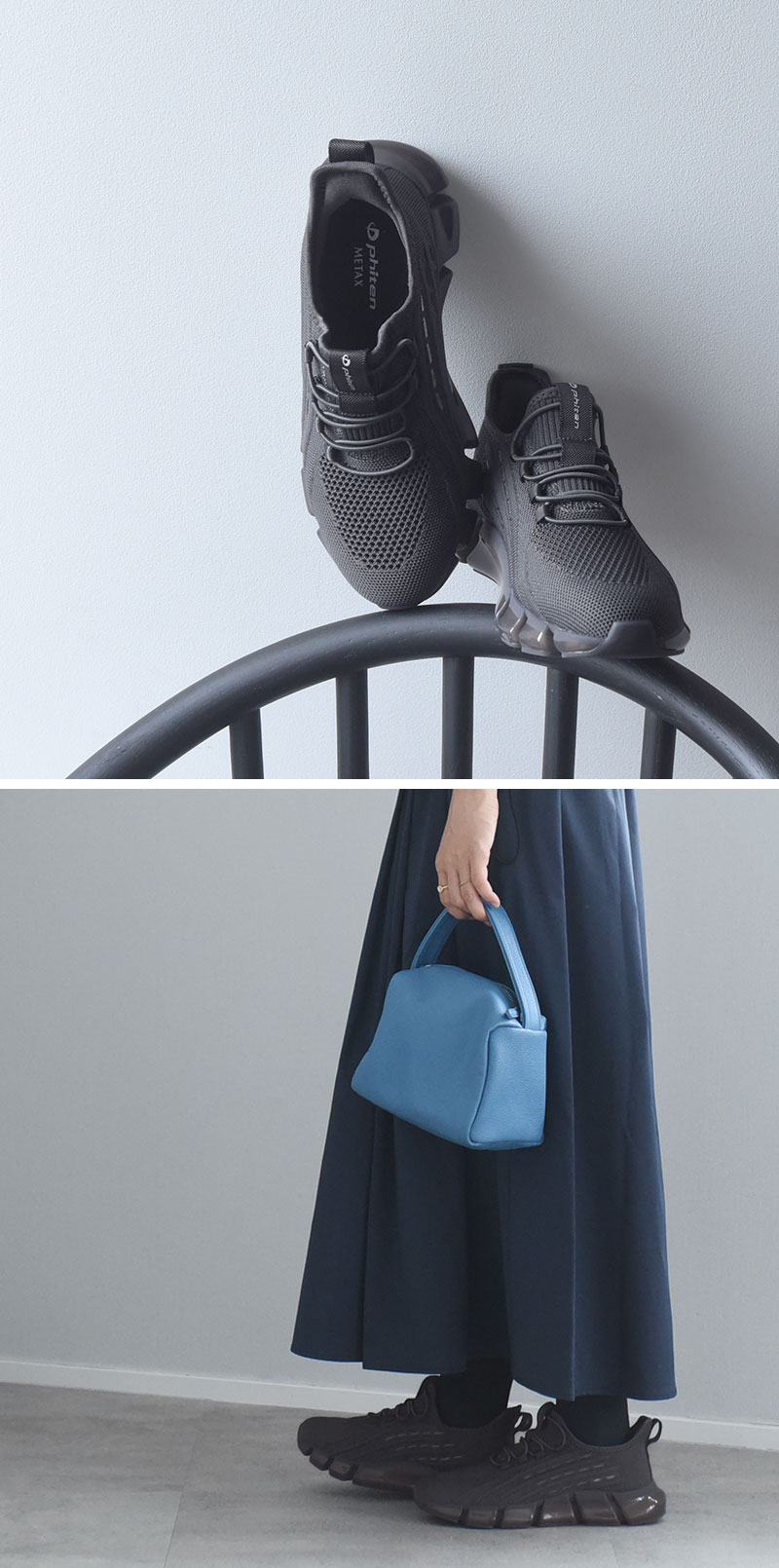 トップアスリートにも親しまれているファイテン社の技術を用いたスニーカー。インソールとアッパーに施してあるメタックス技術により、カラダをリラックス状態へとサポート。余計な負荷をかけず歩行を助けてくれます。