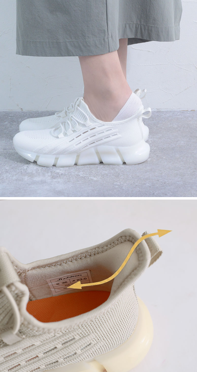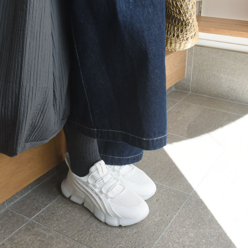 快適なニット素材伸縮性のあるニット素材で足にフィット。通気性も抜群で蒸れにくく、快適な履き心地を実現しています。