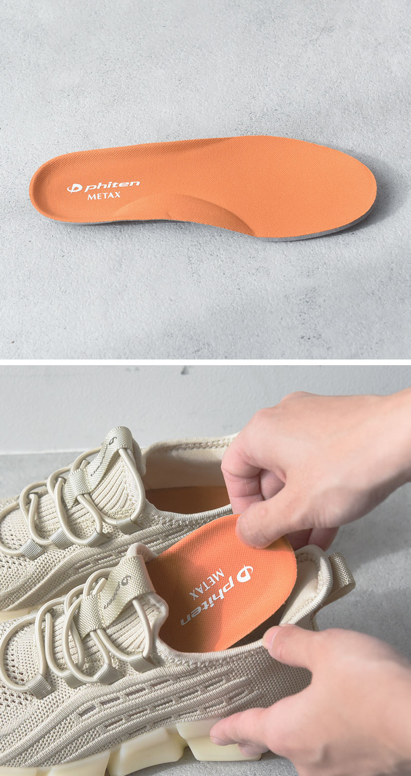 疲れにくい秘密は“メタックス”というファイテン独自の技術を施しているから。カラダをリラックス状態へと導き、歩行を助けてくれます。