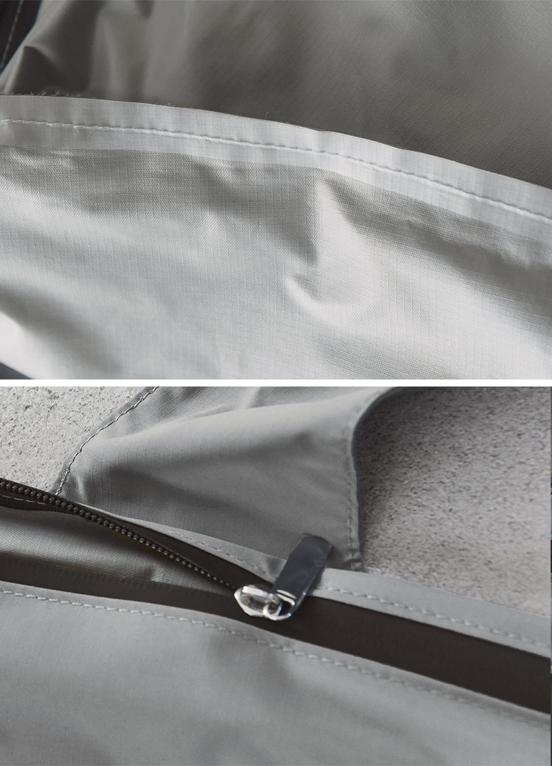 袋の内側も水を通さないコーティングがしてあるので、室内で濡れたバッグをしまうこともできます。