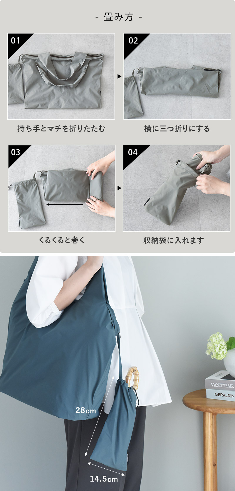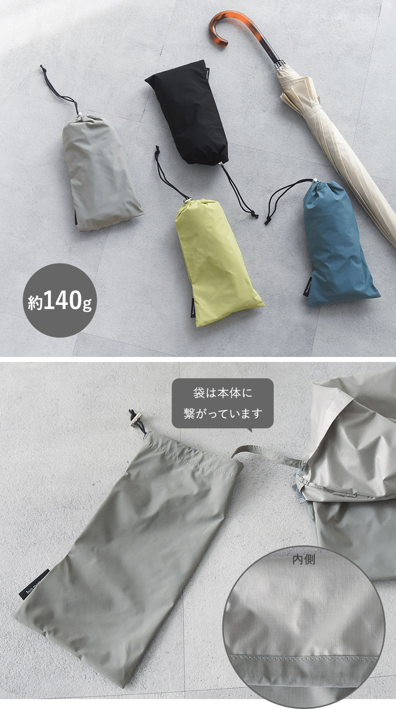 付属の袋に畳んで入れることができるパッカブル仕様で、持ち歩きも◎。天気が不安定な日にはカバンに忍ばせておけば、突然の雨でも安心です。