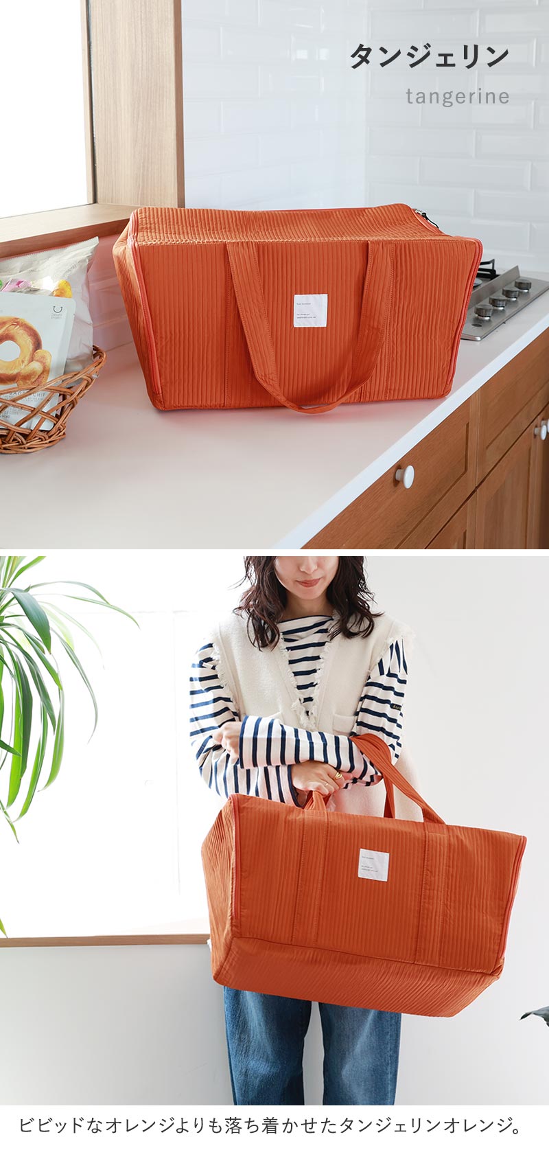 そんな時に活躍するのが、レジカゴごと入る保冷バッグ。裏地に保冷素材を使っているので一般的なエコバッグに比べて高い保冷力を持ち、全面ファスナーで開閉するので冷気をしっかり閉じ込めます。