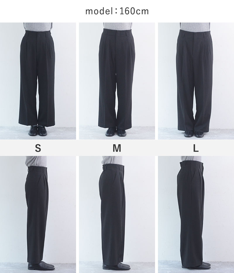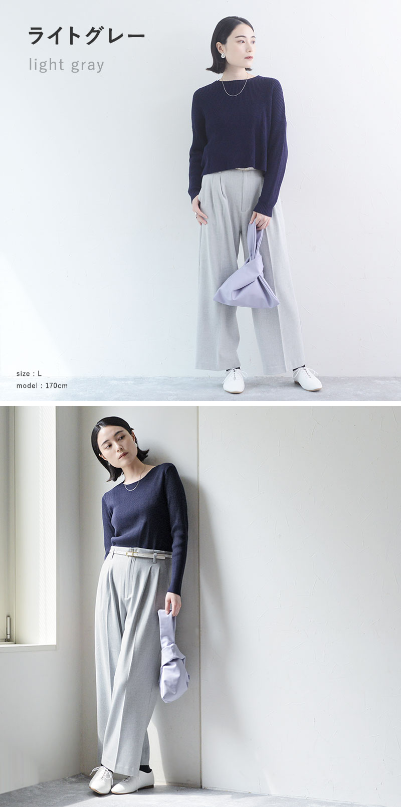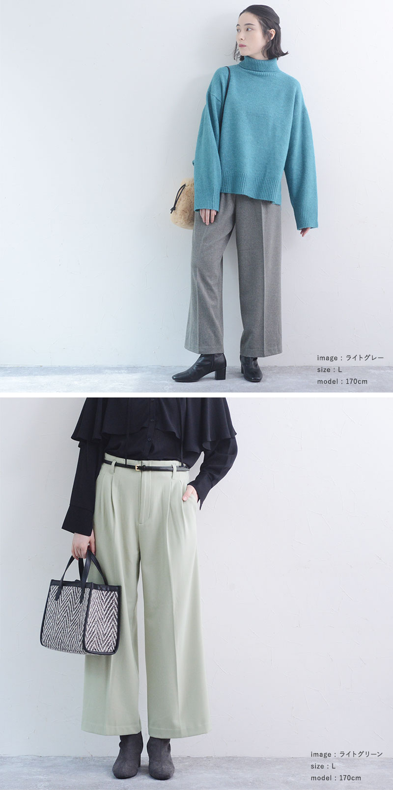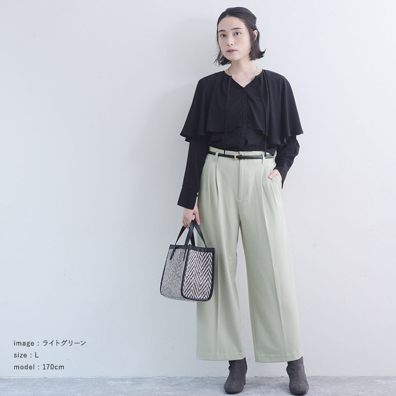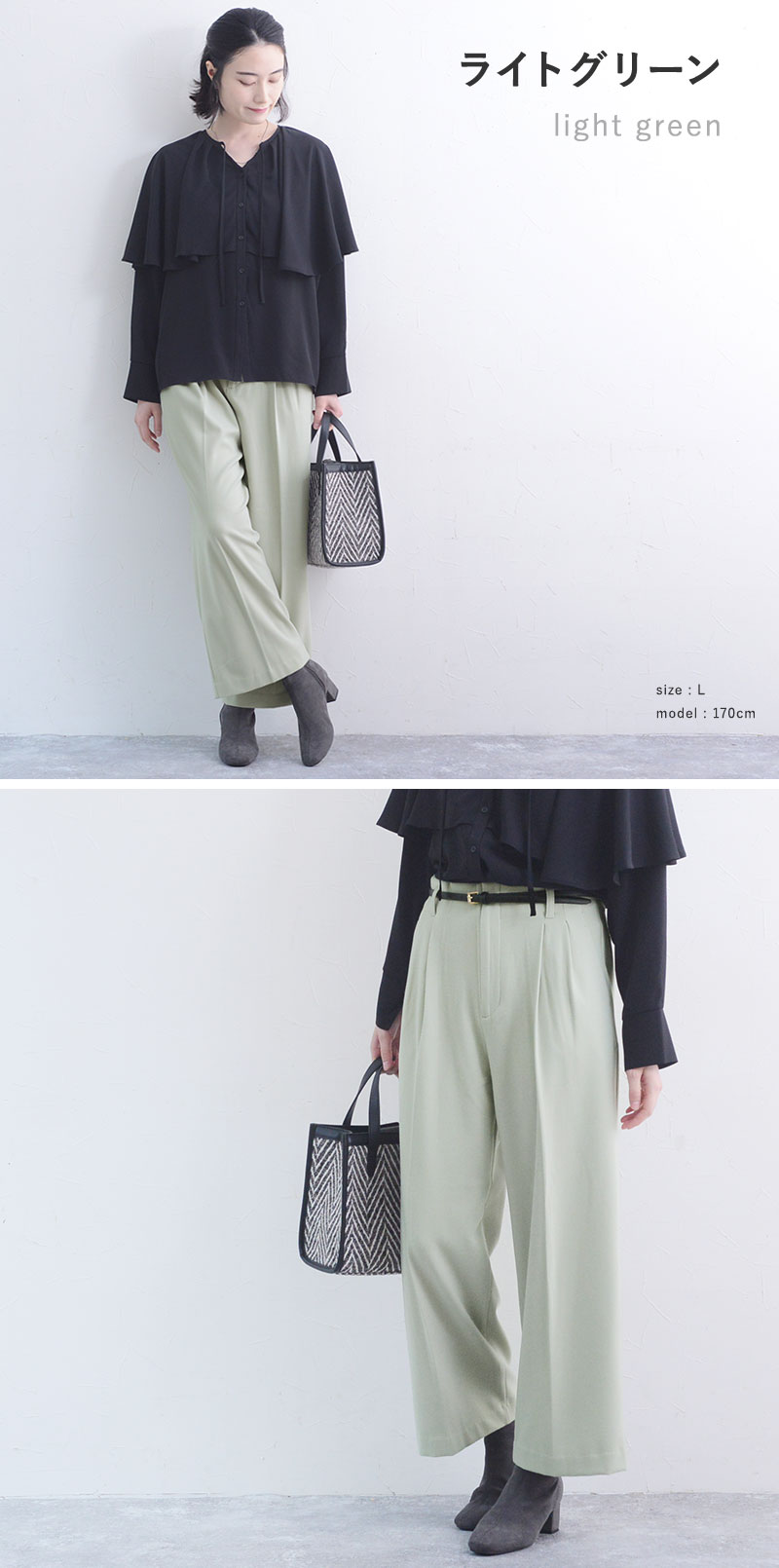 フロントに入った2つのタックと、ワイドシルエットで腰回りも上手にカバー。バリエーション豊かな5カラーで、お仕事コーデからきれいめカジュアルまで、様々なコーデをお楽しみいただけます。