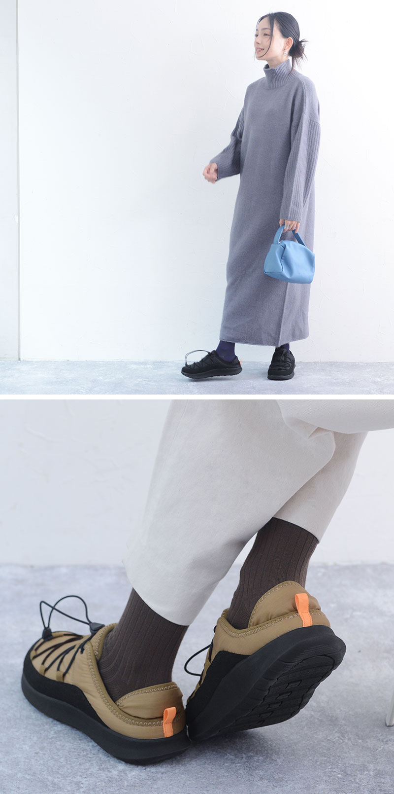クッション性のあるアッパーでふんわり包み込み、冷えがちな足元もあたたかく。秋冬のお出かけシーンをサポートしてくれる一足です。