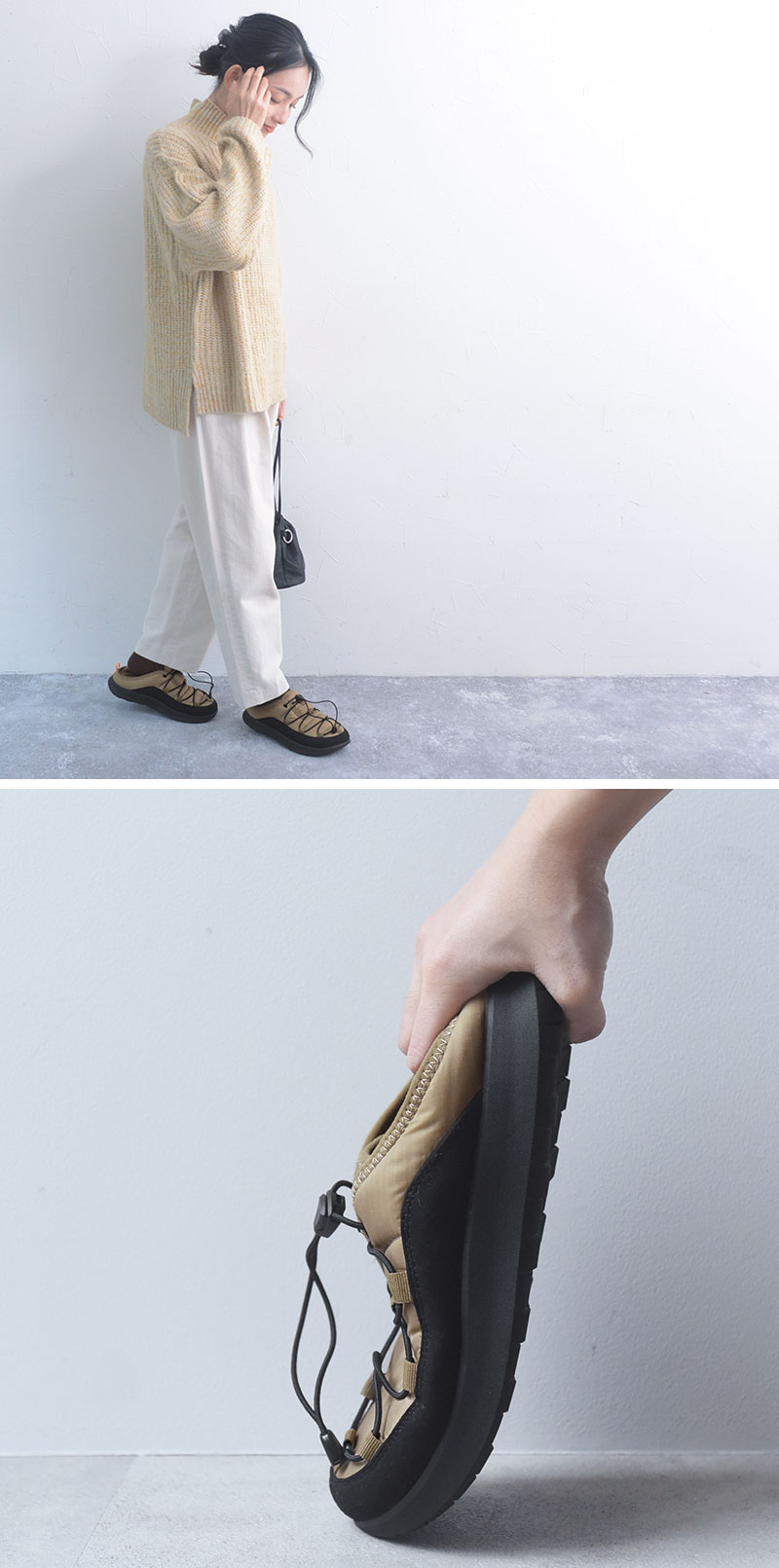 かかとを踏んでも、上げて履いてもOKの2wayタイプ。さっと履いたらそのまま歩きだせる快適仕様です。