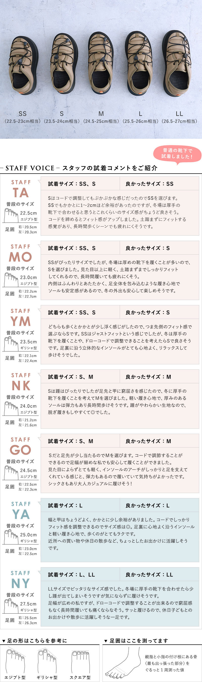 ※サイズ選びの際は目安のサイズとスタッフの試着コメントを参考にしてください。