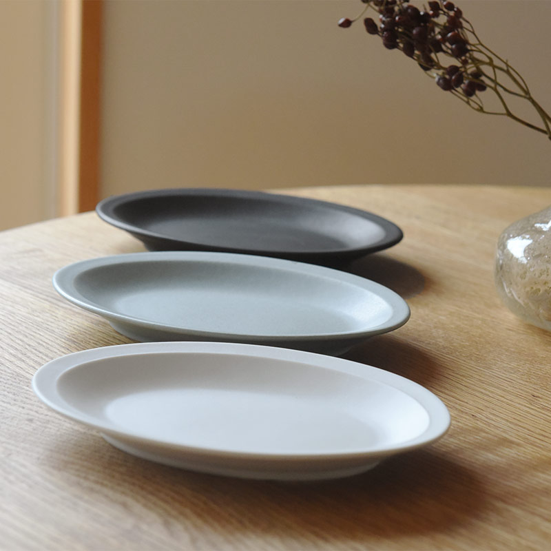 ベーシックに見えて、実は計算しつくされた姿かたち。いつもの料理を、ぐっとこなれて見せてくれるオーバルプレートです。