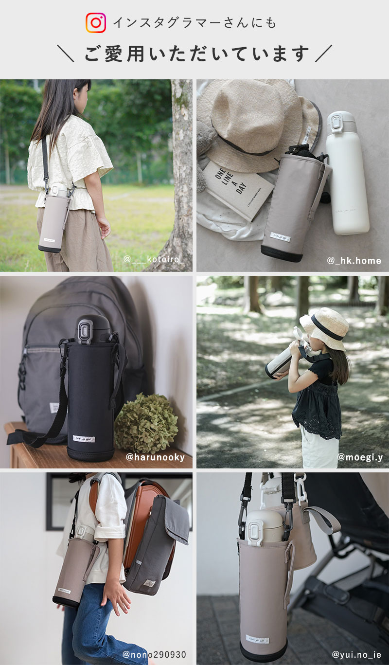 専用カバーを別で付属することで、水筒本体はショルダー用のパーツがない、すっきりしたデザインに仕上がりました。