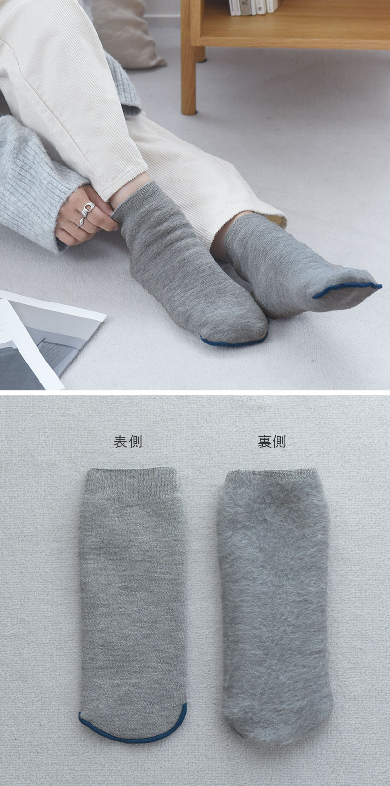 内側が起毛素材になった、アンクル丈のルームソックス。