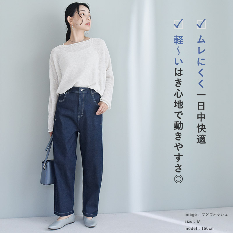 軽量感と伸縮性でラクチン一般的なデニムよりも軽いので、重さに苦手意識があった方にこそ体感していただきたい、楽な穿き心地です。