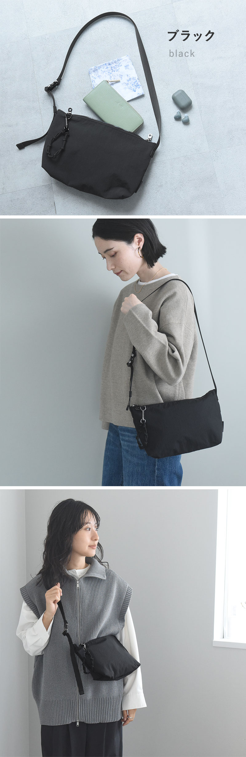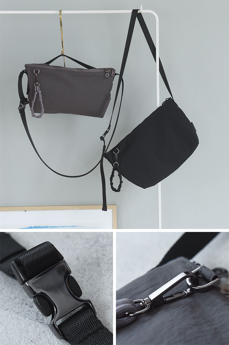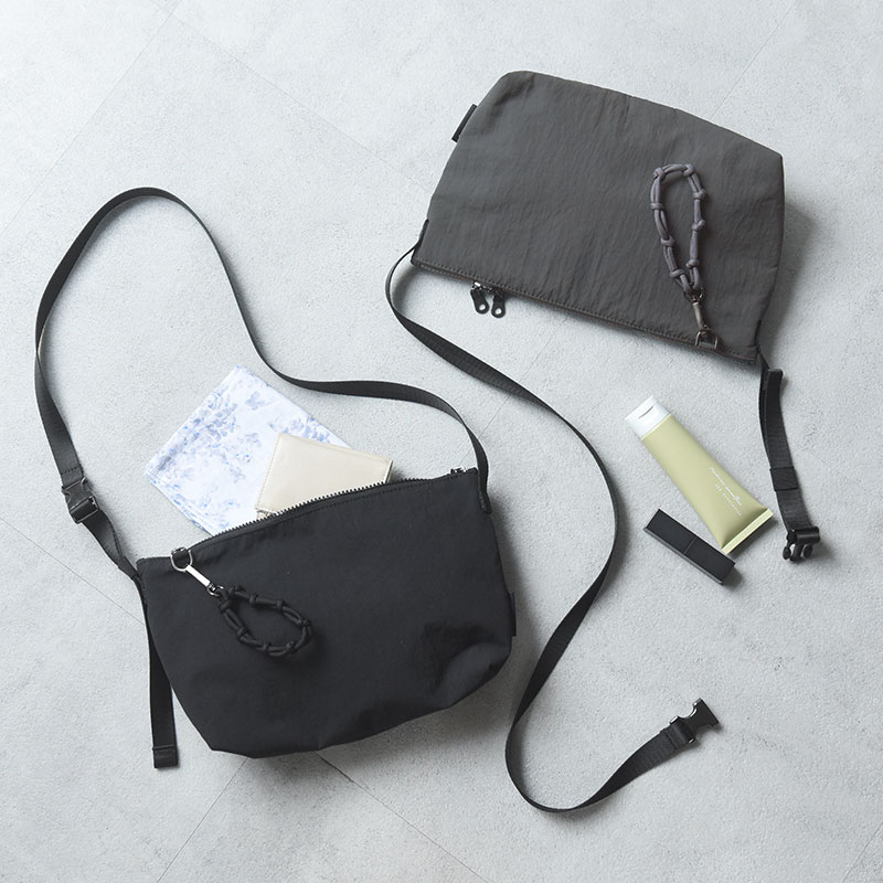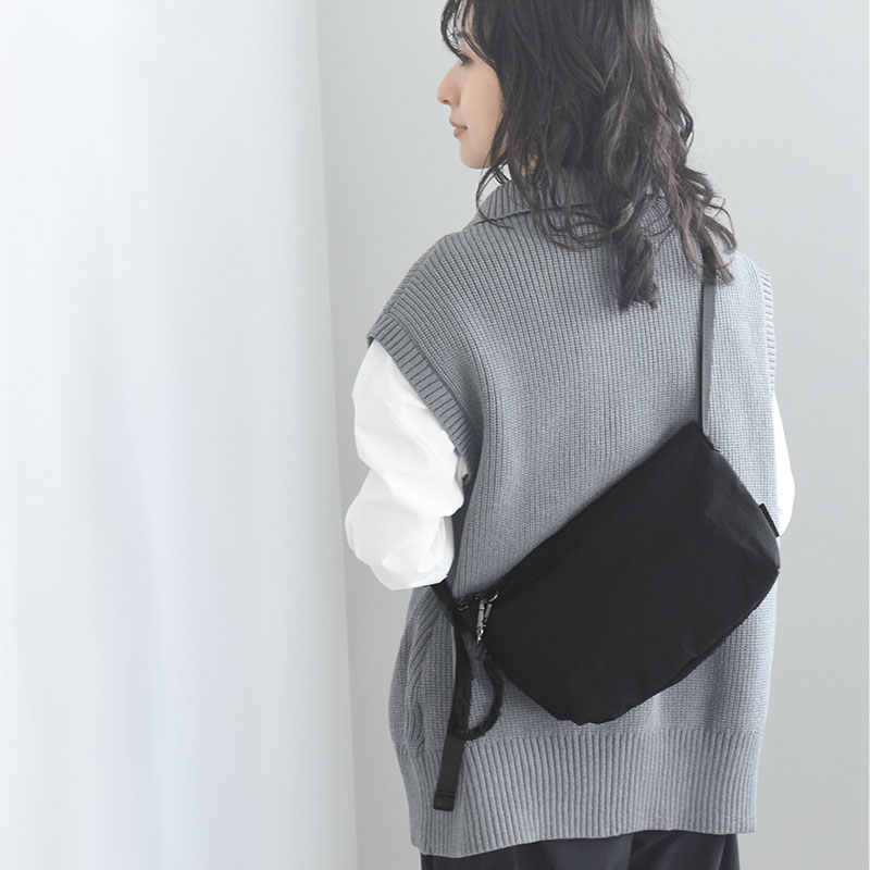 5つのポケットで整頓上手、軽量ミニショルダーが登場です。すっきりスリムに見えて実は大容量。ショルダー部分にはバックルが付いており着脱もワンタッチ、スムーズにできます。