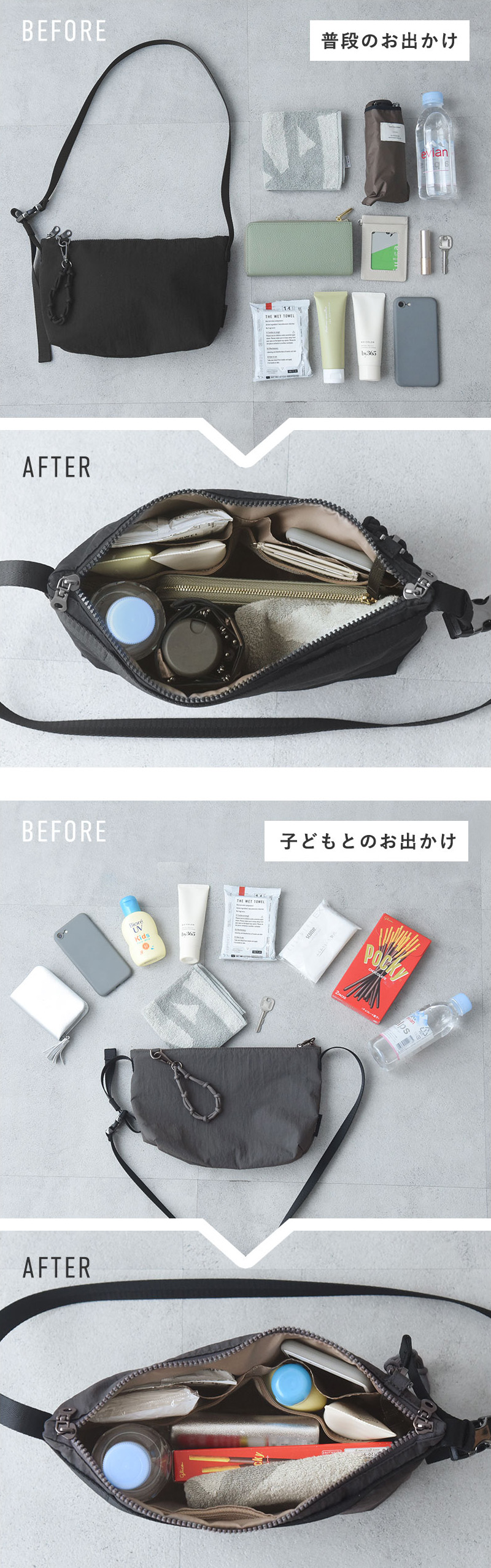 大きなバッグを持って行くまでもないけれど、水筒や必需品はしっかり持ち歩きたい、「ちょっとそこまで」の相棒に。