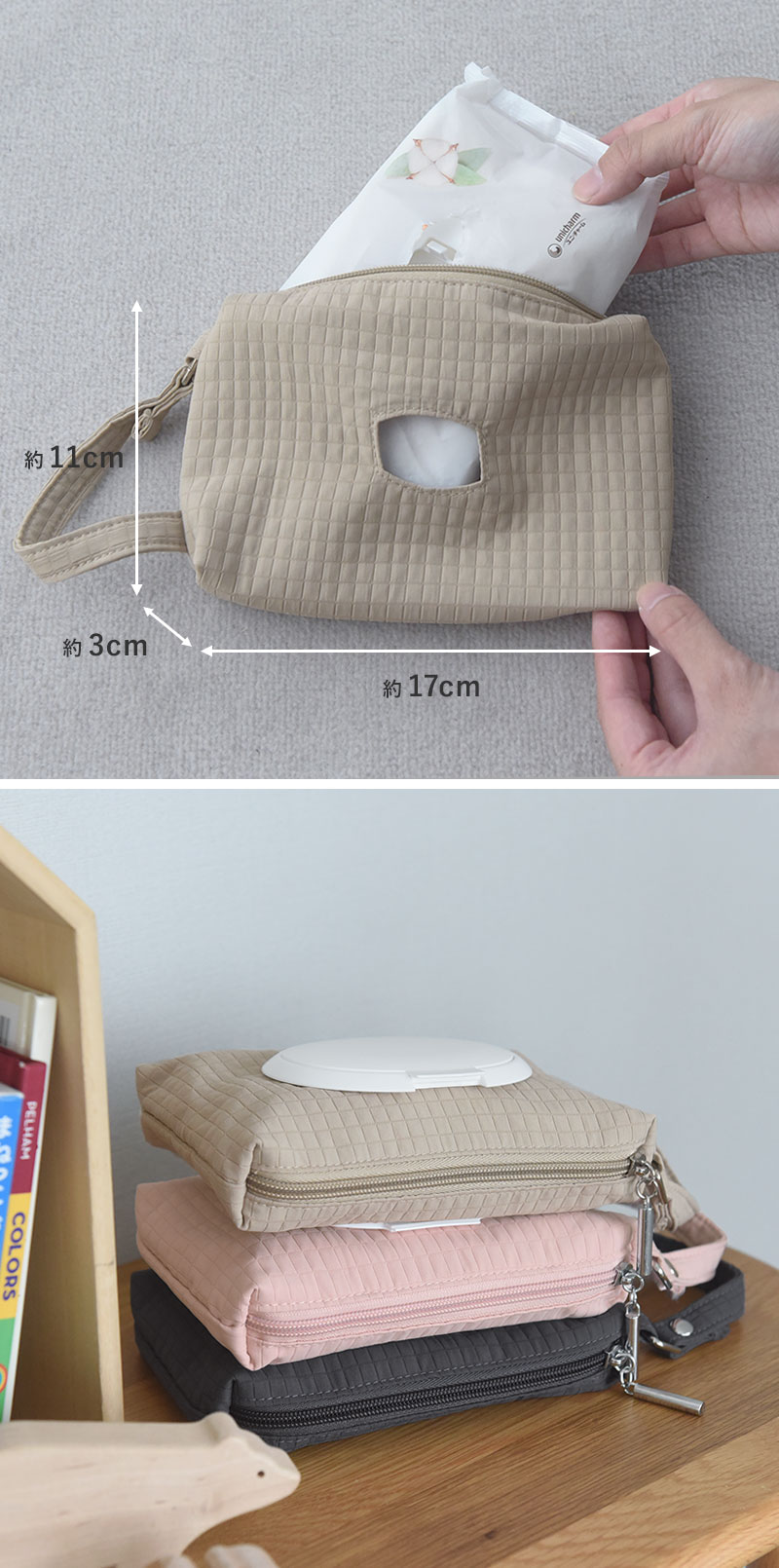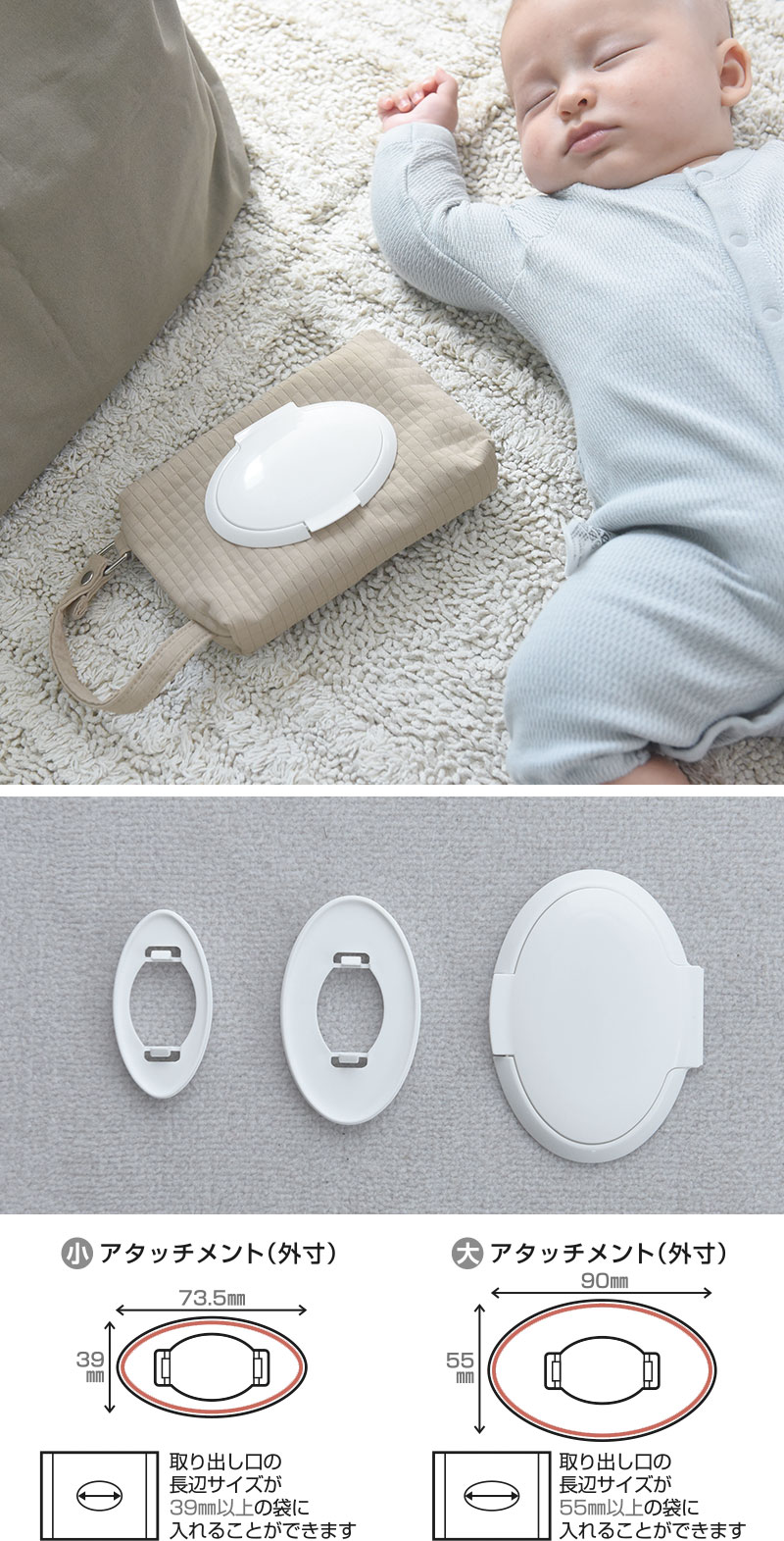 ※市販のおしりふきやウェットティッシュが入るサイズですが、大きめのおしりふきシートは入らない場合もございます。予めご了承ください。
