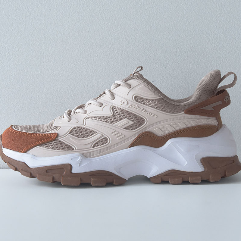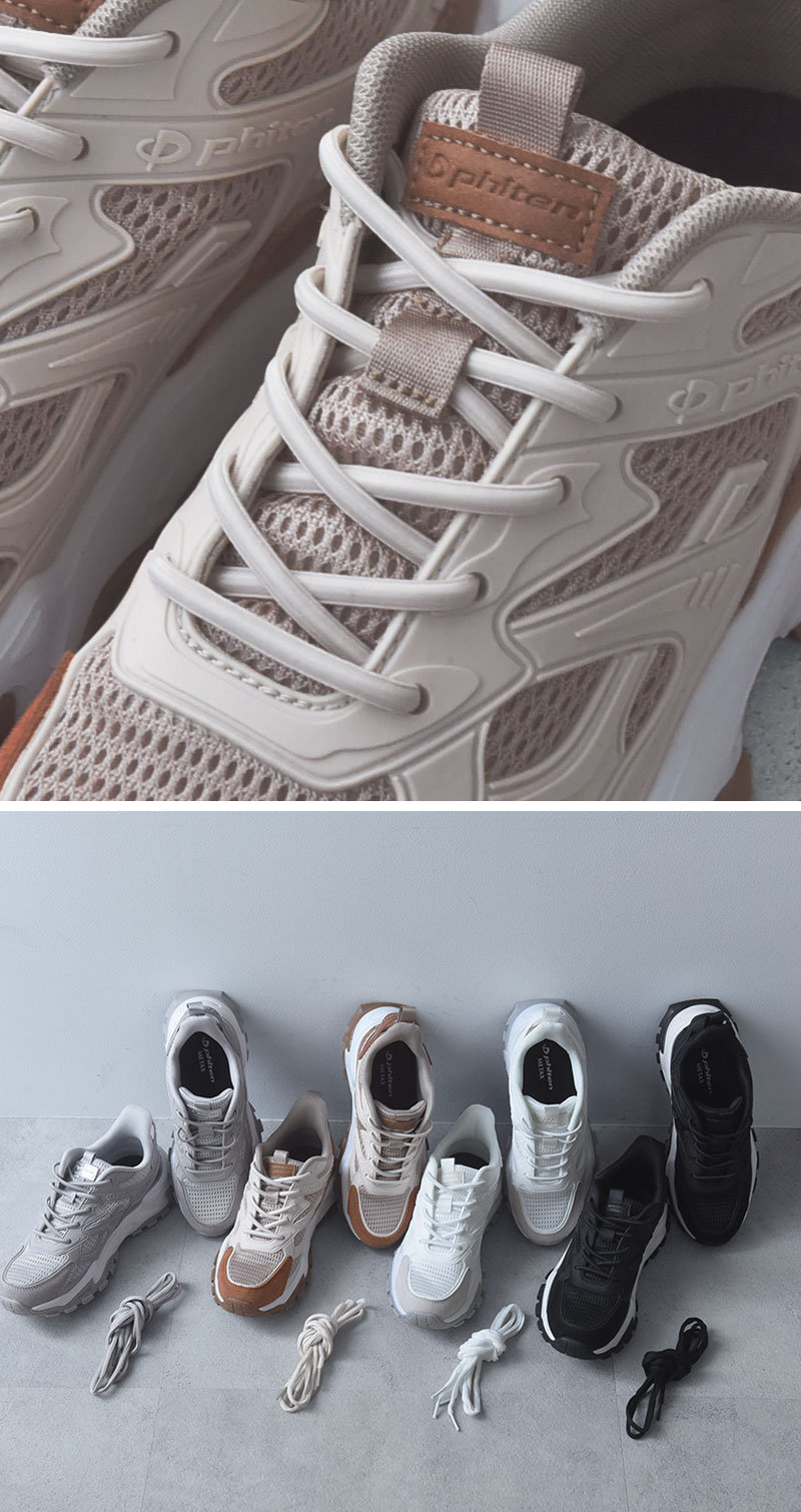 トップアスリート御用達「ファイテン社」独自の技術を使った、疲れにくいスニーカー。こちらは、ややボリューム感のあるトレンドライクな一足です。