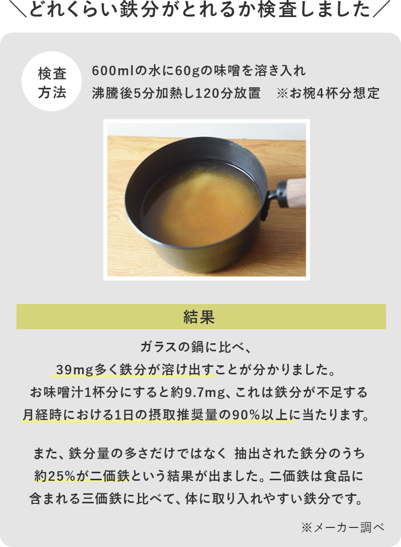 毎日の味噌汁作りに使えば、鉄分がたっぷり溶け出した一杯に!飽きずに毎日飲める汁物で、「かんたん鉄分習慣」はじめませんか?