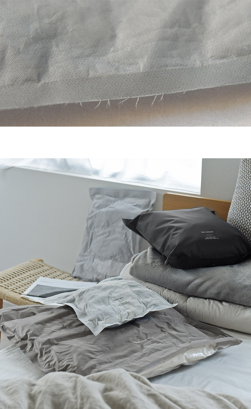 よくあるビニール製の圧縮袋ではなく、まるで布地のようなオックスフォード素材。薄手なのにとっても丈夫で、繰り返し何度でも使えます。
