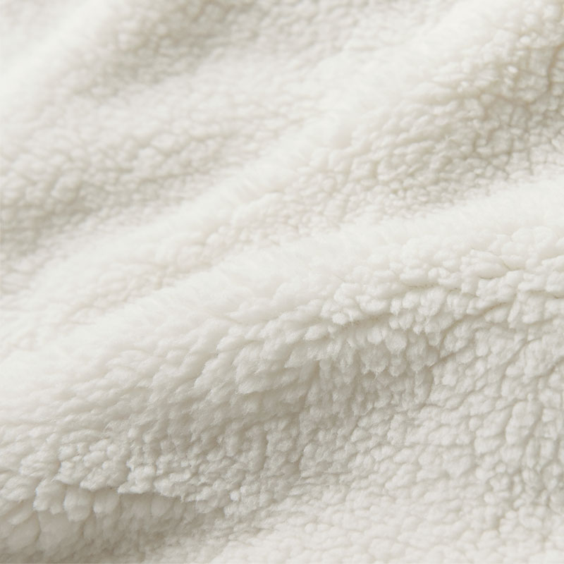 ベビーキッズに触れる面は、ボリューム感のあるシープボアを採用。ふんわり柔らかく包み込んでくれます。さらにキルティング加工を施すことで、ふんわり感と保温性をアップさせました。