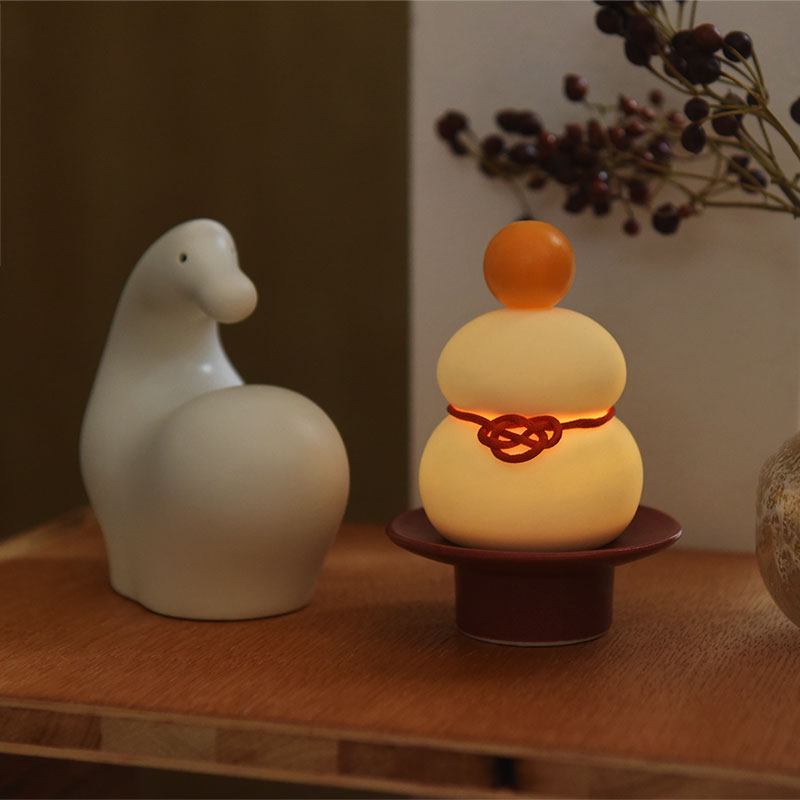 内臓のライトを光らせれば小さな間接照明にも。長く大切に飾れる鏡餅を探している、そんな方にぴったりです。