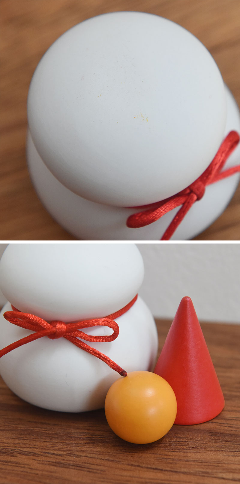 素朴な風合いの小さな鏡餅。と思いきや雪だるまに変身?!