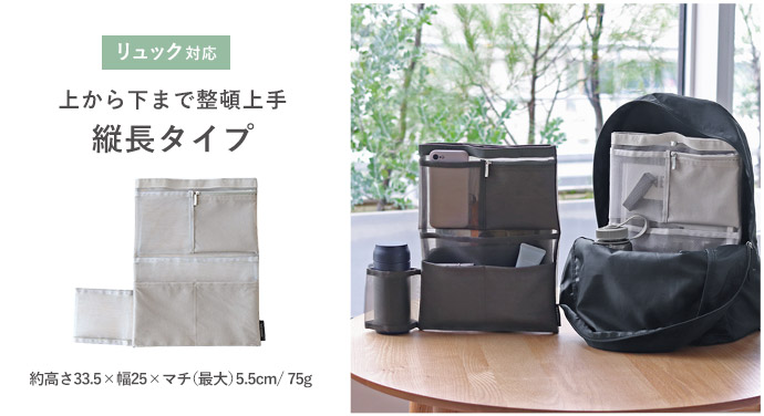 bon moment リュックにも使える メッシュ 縦型バッグインバッグ/ボンモマン