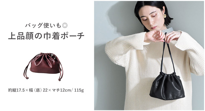 バッグとしても使える 柔らかフェイクレザー 巾着ポーチ ミニバッグ/kauliina カウリーナ【送料無料】(20%OFF)