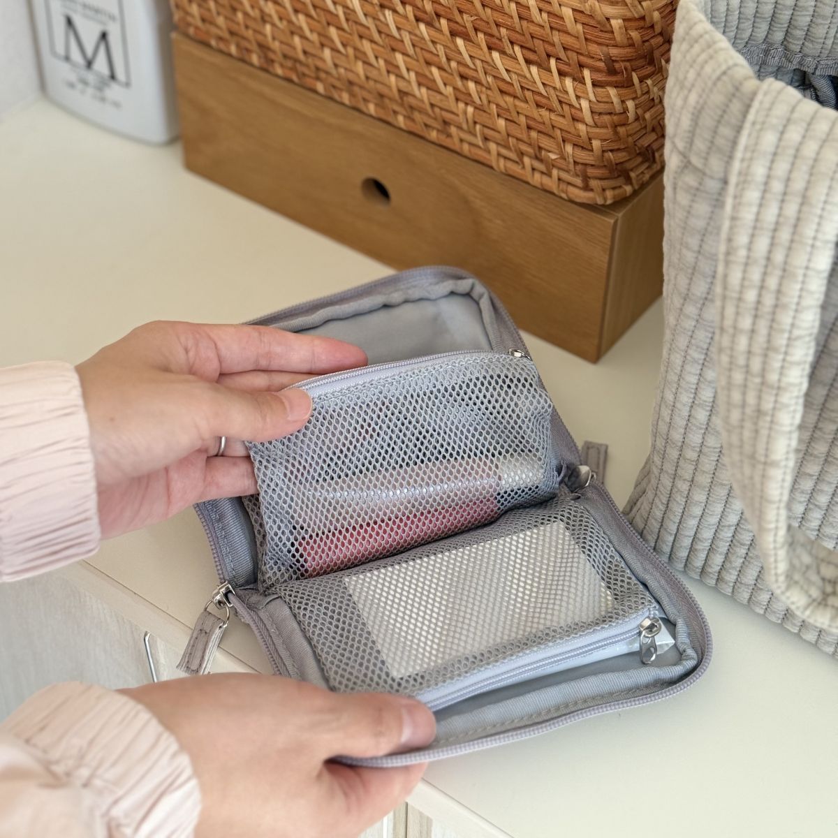 ポケットがたくさんあって整頓しやすく、閉じればシンプルな佇まい。出し入れの際にバッグを開け閉めするという手間は増えますが、娘ももう5歳だし、きっと使いこなせるはず。