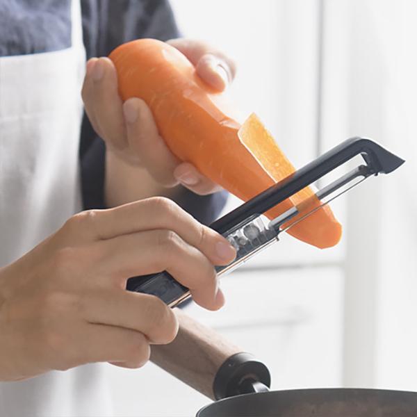 野菜の皮剥きはもちろん、しゃぶしゃぶ鍋のニンジンや大根のヒラヒラ薄切り野菜にも、そして食後のリンゴ剥きにまで。いつでも砥ぎたてフレッシュな刃で、手際スムーズを手に入れましょう。