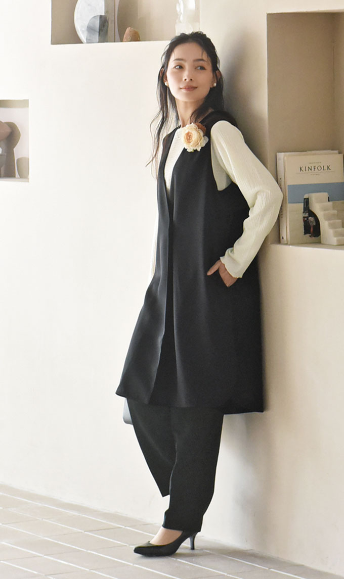 綺麗な黒が続く黒原着素材 ジレAgreable