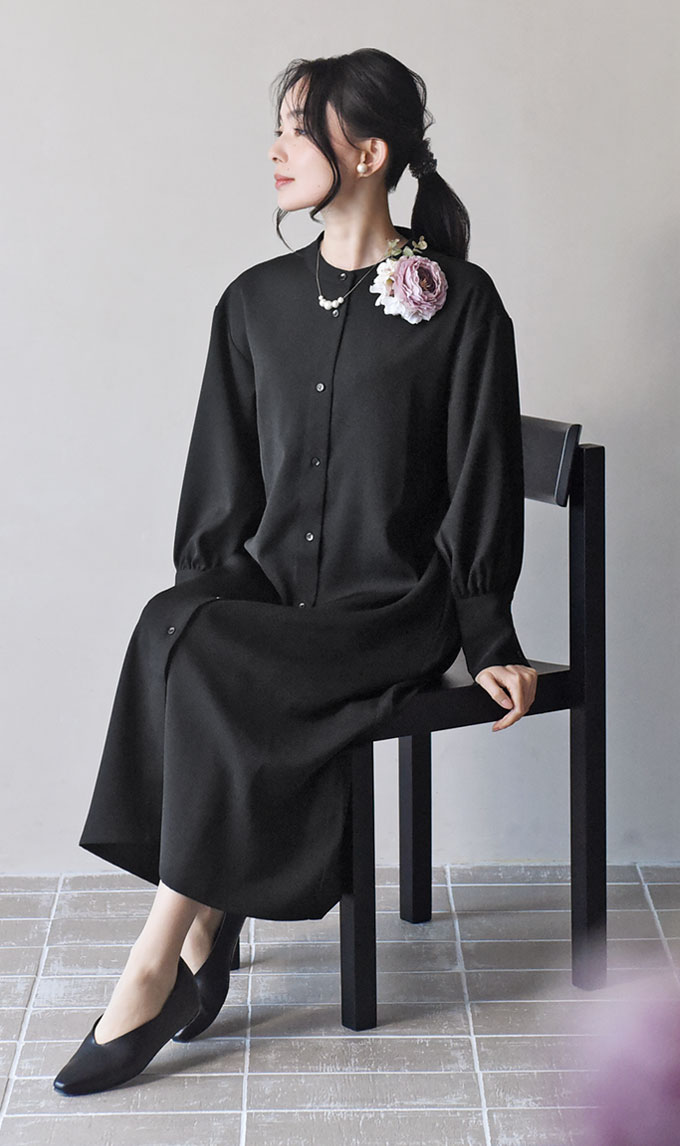 綺麗な黒が続く黒原着素材 ワンピースAgreable